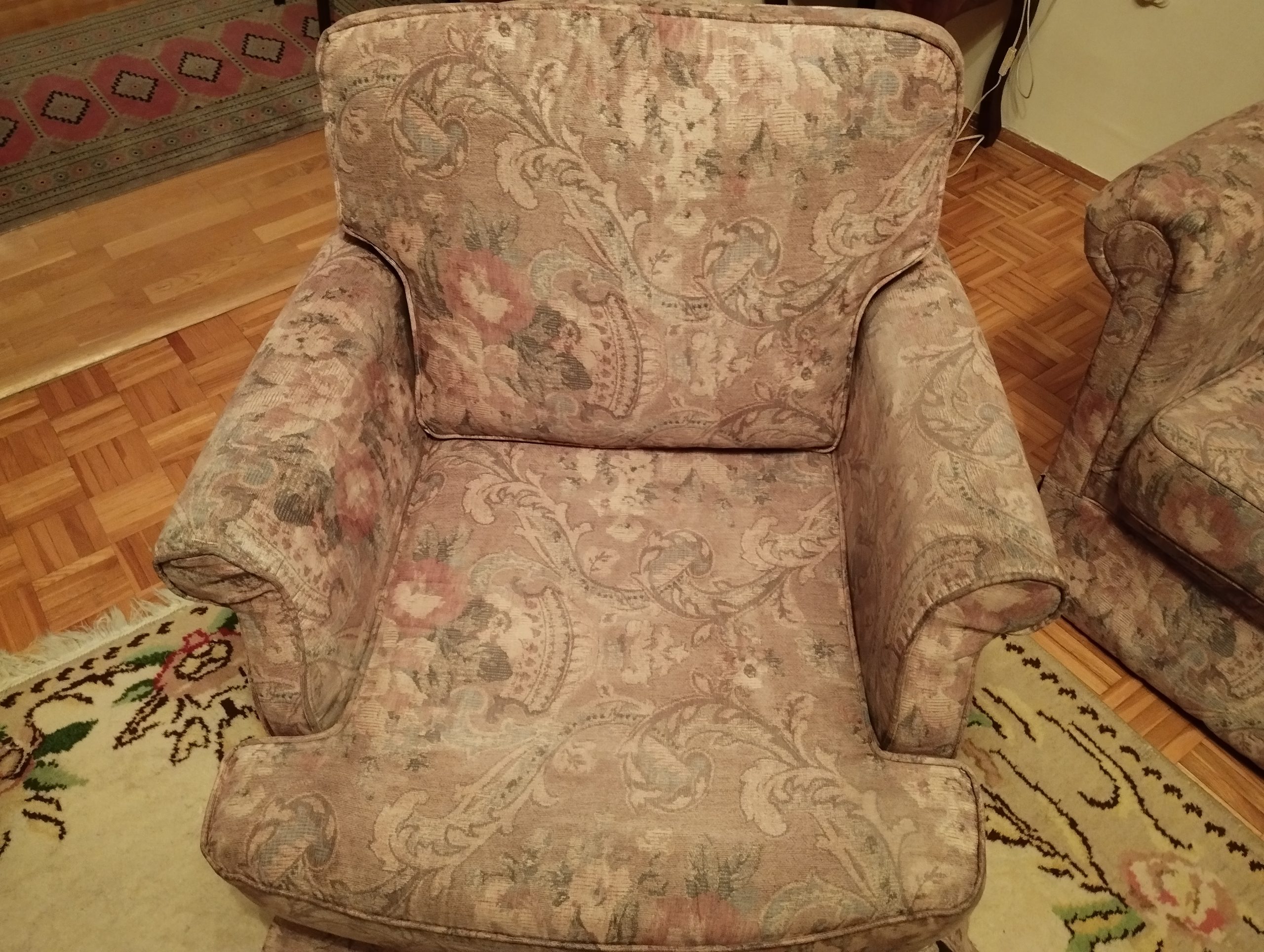 Dvosjed i trosjed na rasklapanje, fotelja i vuneni tepih 2x3 m. Sve zajedno 700KM