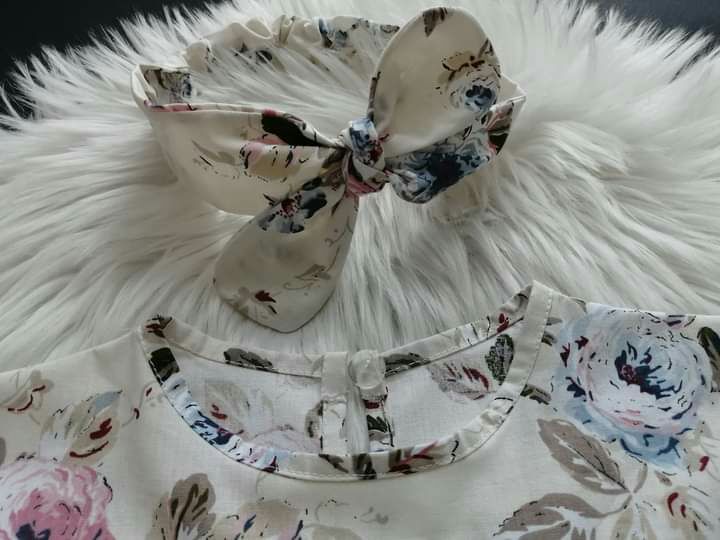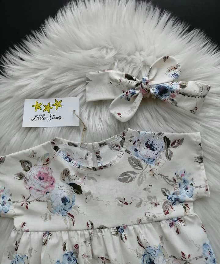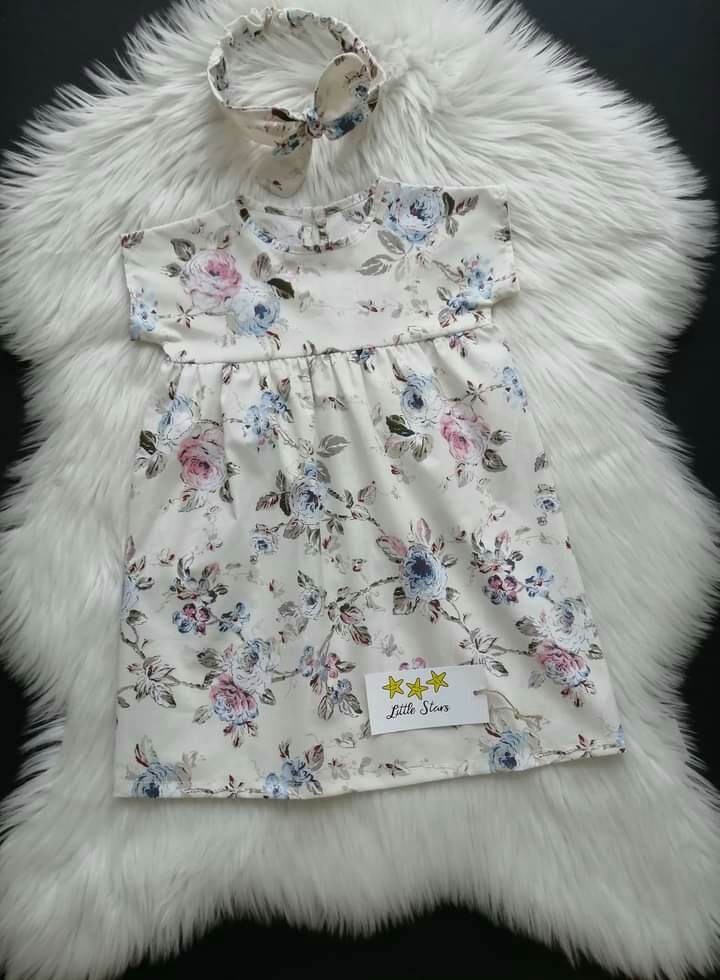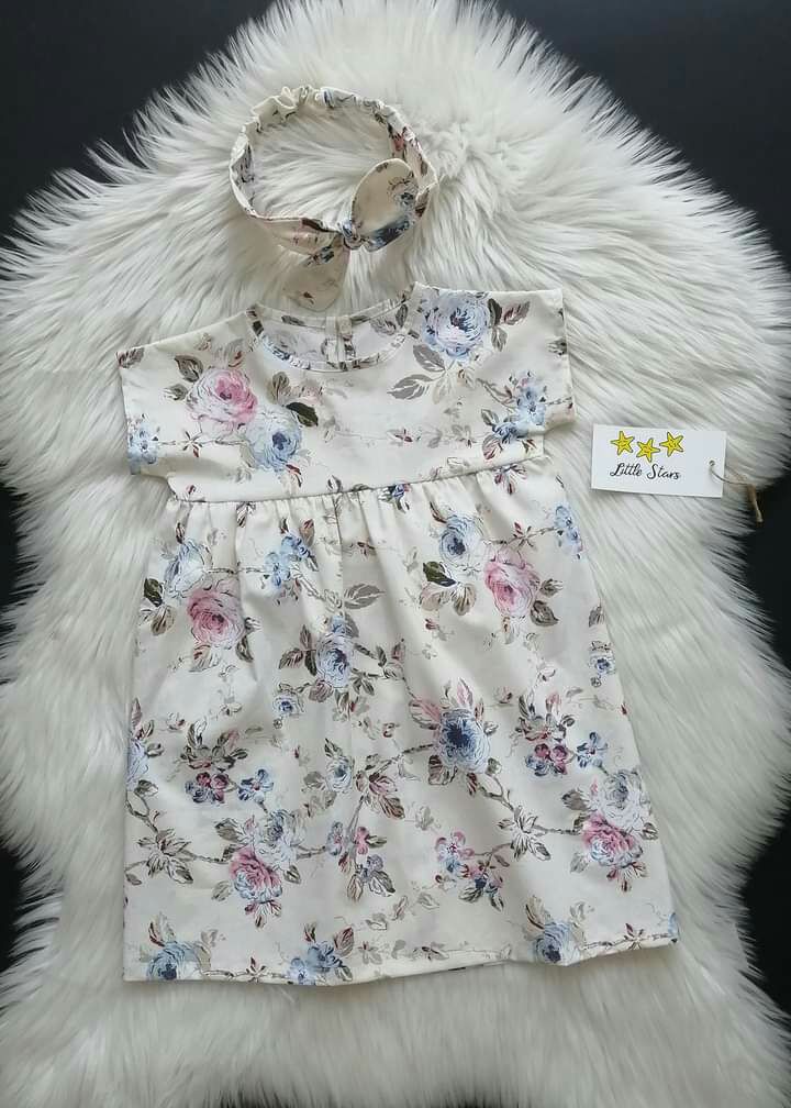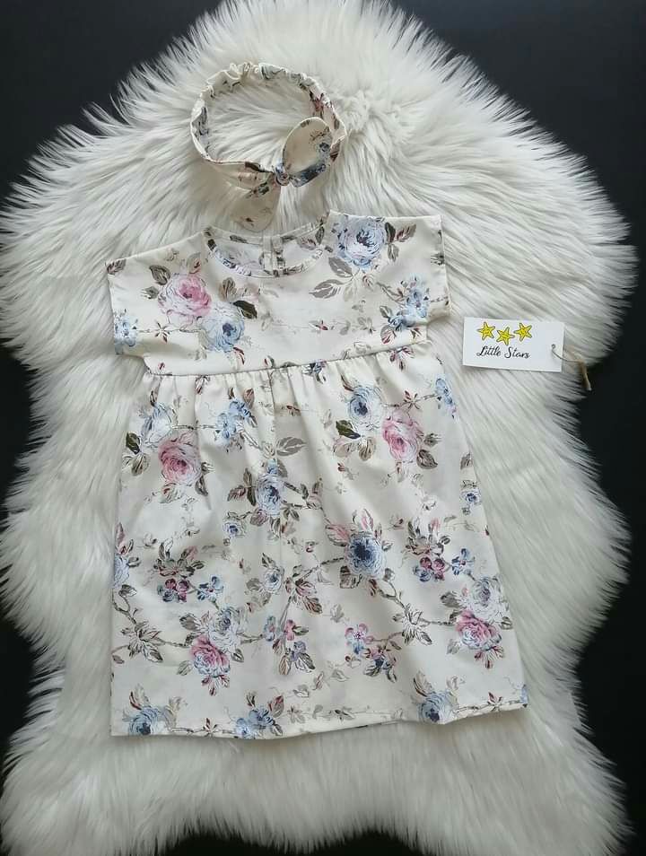 Haljinica je na kopčanje pozadi. Trakica za glavu ide uz haljinicu, ona se podešava. Moguće je raditi i od drugih dezena. 100% pamuk. Veličine od 3 meseca do 12 godina. ⭐Cena: 2300 dinara.