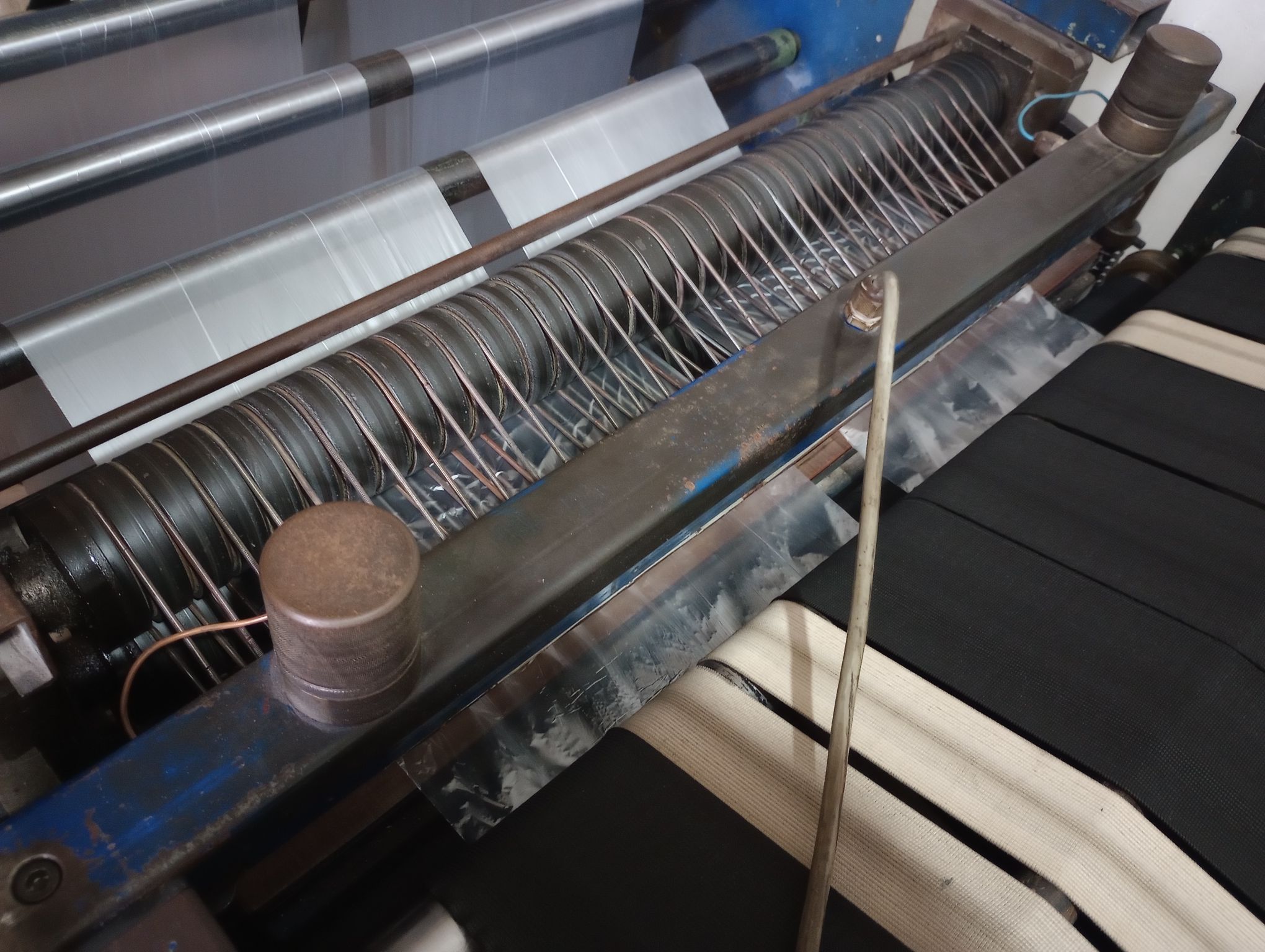 Mašina za sečenje plastičnih kesa za zamrzivač. Brzina 100 takta/min. Tri motora servo motor.